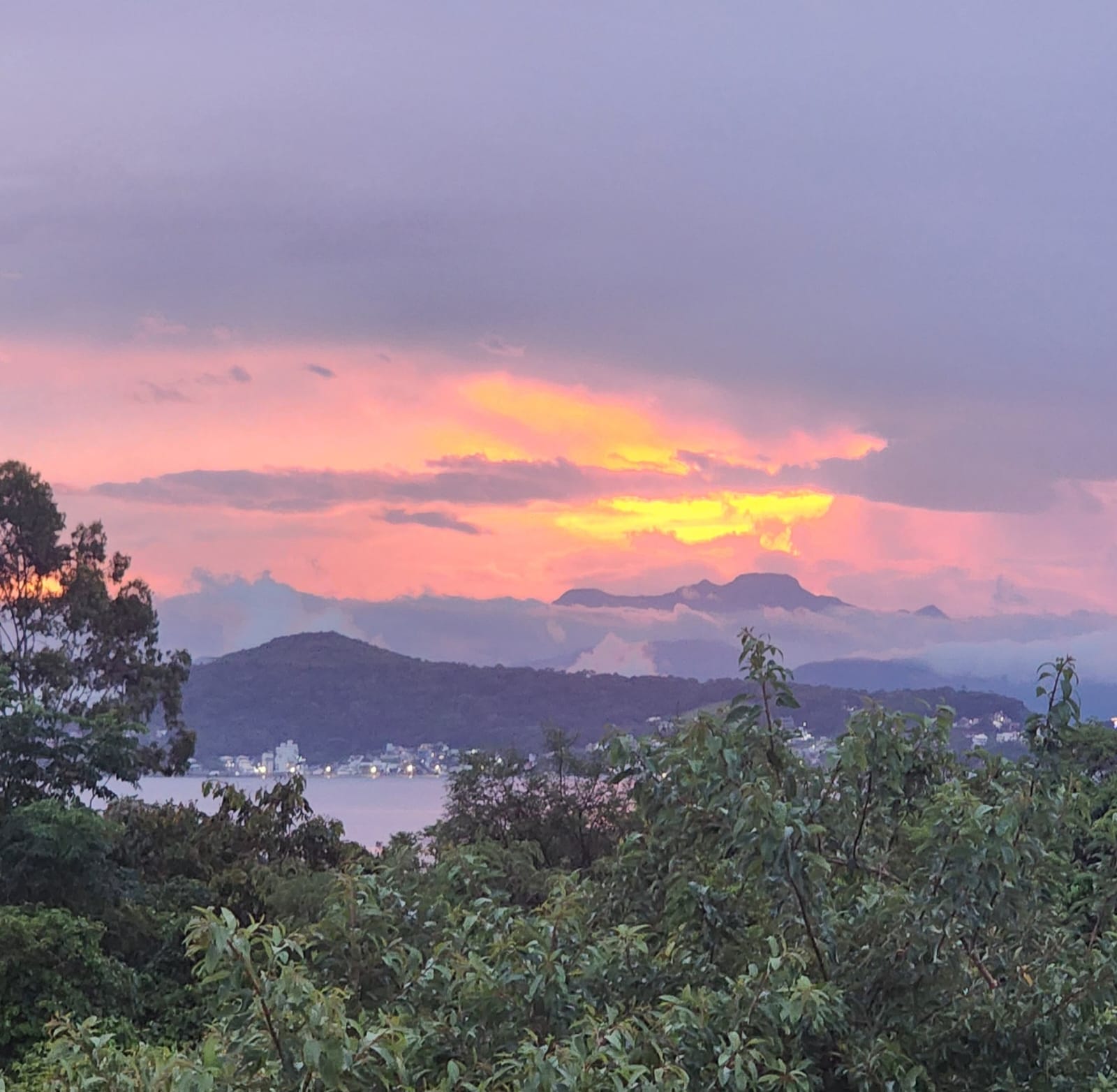 Entre o céu e a cidade, o silêncio do pôr do sol também fala.