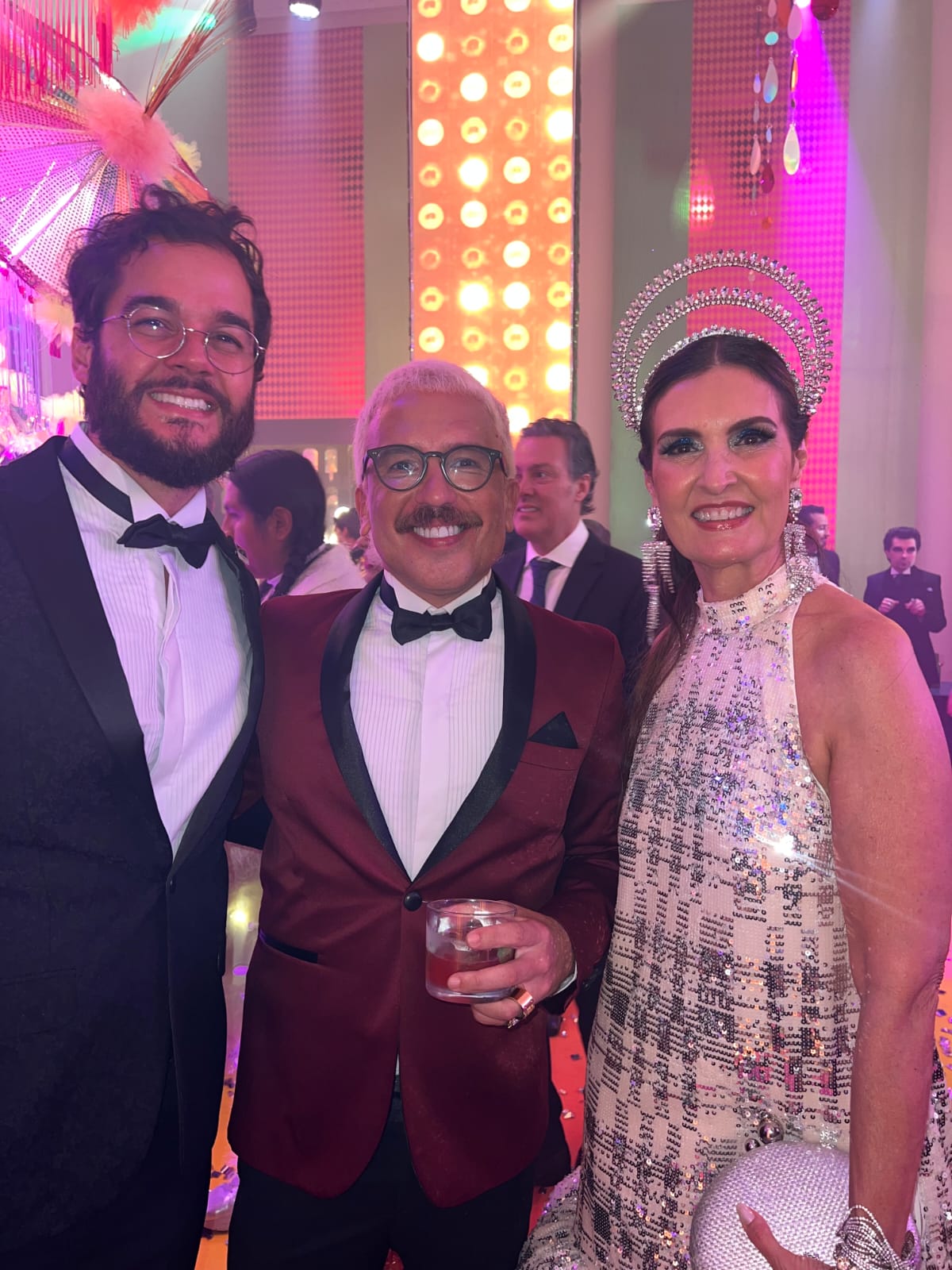 O RP mais bem conectado de Balneário Camboriú, o catarinense Alex Ferrer, entre o deputado Túlio Gadêlha e a apresentadora Fátima Bernardes, no Baile da Vogue 2026, no Copacabana Palace, no Rio de Janeiro.