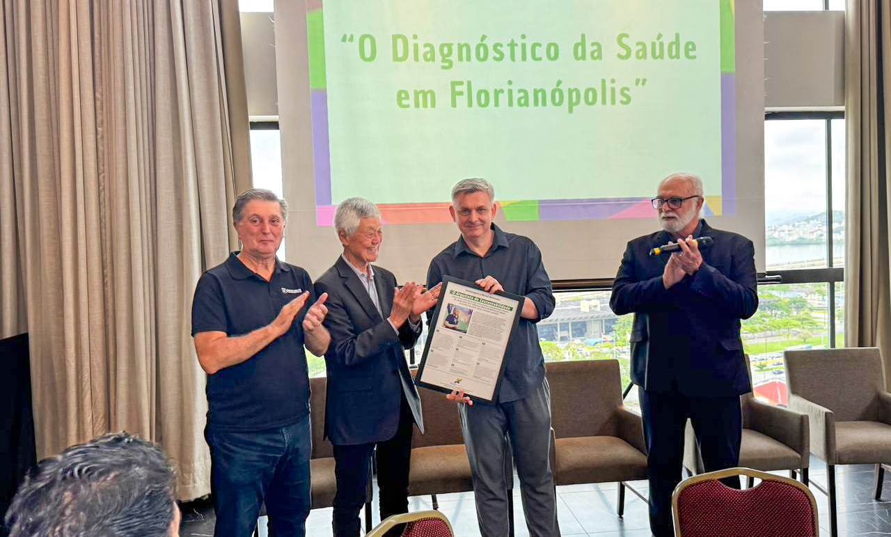 O Floripa Sustentável realizou ontem (26) o último Almoço Estratégico de 2025, com o tema ‘O Diagnóstico da Saúde em Florianópolis’. Na abertura do evento, houve homenagem ao arquiteto Michel Mittmann, atual secretário executivo de Projetos Estratégicos da Prefeitura de Florianópolis, que anunciou há alguns dias que está deixando a administração municipal para voltar às suas atividades na Arquitetura. Roberto Costa, coordenador do Floripa Sustentável, destacou a importância do trabalho que Michel realizou durante os oito anos em que esteve na Prefeitura.