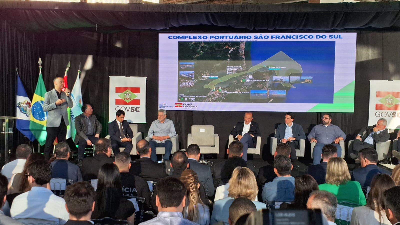Com investimentos de R$ 436 milhões, a dragagem deve começar até o final do ano, com previsão de conclusão para o segundo semestre de 2026. A obra conta com três características inéditas: primeira PPP entre portos brasileiros, maior engordamento de praia da história do país e primeira vez no Brasil que sedimentos são usados para praia. O contrato prevê o aumento do calado de 14 para 16 metros, o que permitirá a entrada de navios de maior porte. “Queremos transformar Santa Catarina no novo hub portuário do país”, afirmou o ministro Silvio Costa, durante o seu discurso.